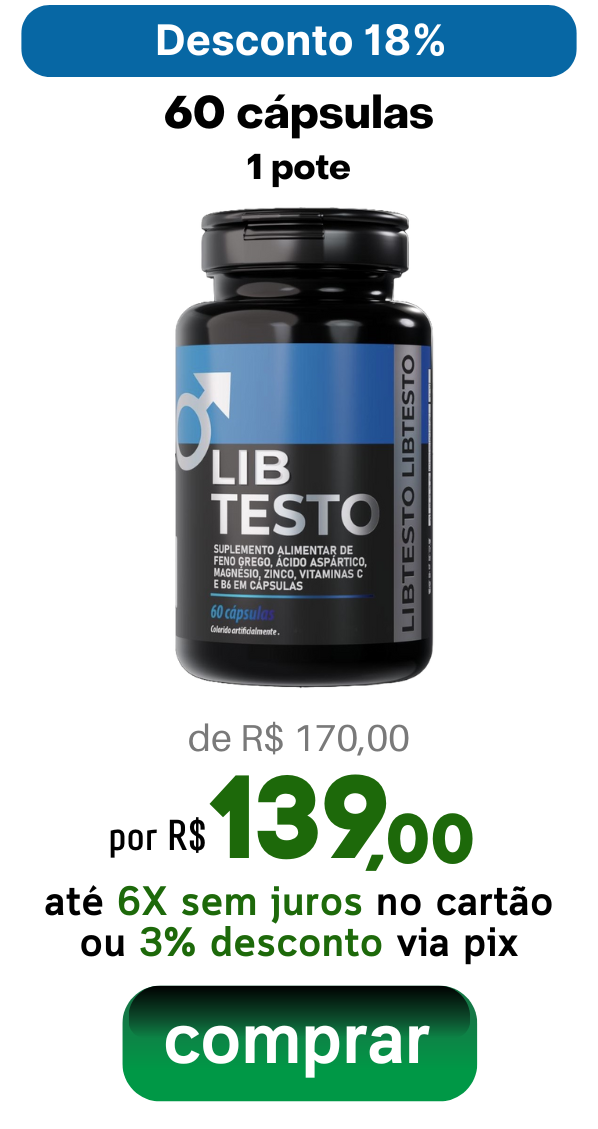 “Depois dos 40 comecei a sentir a diferença nos treinos. Com o LibTesto, voltei a evoluir e ganhar massa magra. Energia lá em cima e aquela sensação de força de novo. To muito contente em ter encontrado esse produto.”